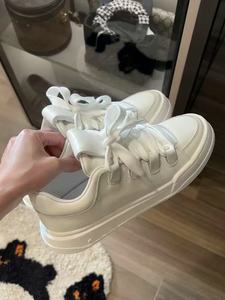 网红同款阿miu 家厚底百搭小白鞋女2025夏季新款白色系带休闲板鞋