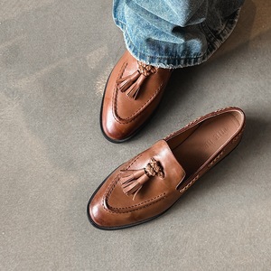 流苏低跟乐福鞋女2025新款秋冬复古平底一脚蹬英伦风手工小皮鞋