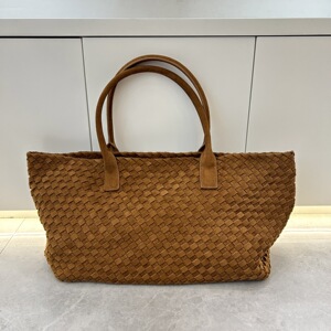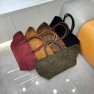 欧美高质感头层磨砂牛皮编织包B*大容量托特包时尚百搭轻奢购物袋