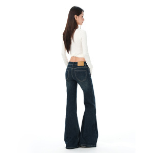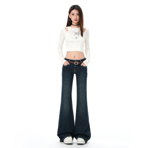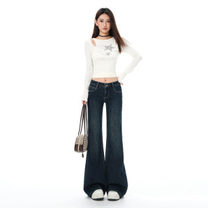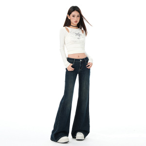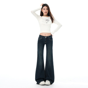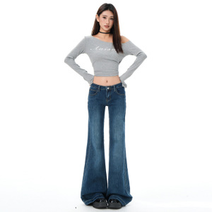 水泥灰低腰微喇叭牛仔裤女2025年秋季新款不贴腿直筒弹力喇叭裤子