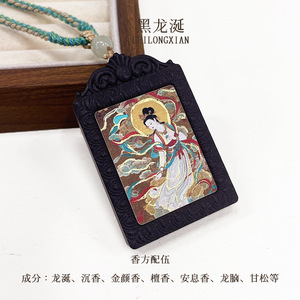 手绘描金国潮嫦娥奔月唐卡合香牌吊坠挂脖天然材质持久留香挂件