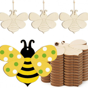 木制圣诞树蝴蝶南瓜带孔DIY礼品标签手绘蜜蜂木片圣诞节派对装饰