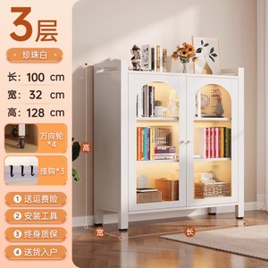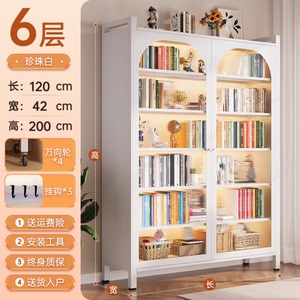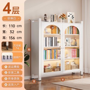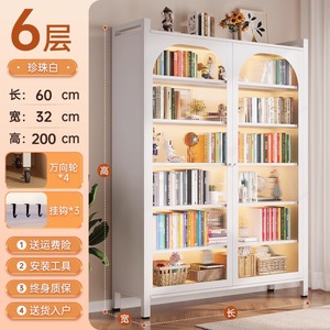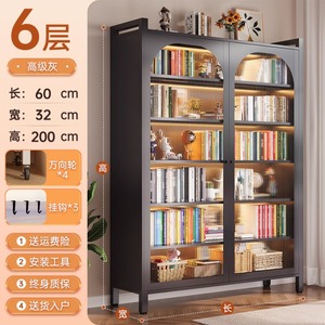 钢制书柜对开门防尘书柜客厅储物一体靠墙可移动落地置物收纳柜