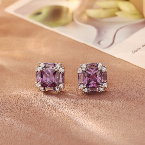 紫色锆石精致百搭耳钉轻奢时尚百搭优雅耳环高级感气质简约耳饰女
