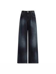 深蓝色渐变阔腿牛仔裤女秋季新款高腰宽松美式松弛垂感直筒拖地裤