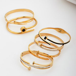 个性潮人满镶泥巴钻钉子卡扣不锈钢金手镯厂家批发手饰wholesale