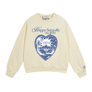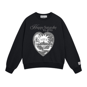现货重磅SATUR卫衣经典款爱心字母印花圆领上衣男女同款一件代发