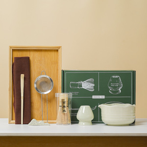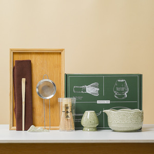 跨境爆款7件套Matcha热销抹茶绿色陶瓷抹茶碗工具套装彩盒百本立