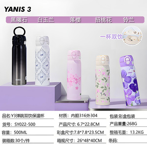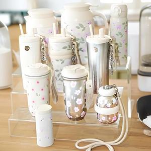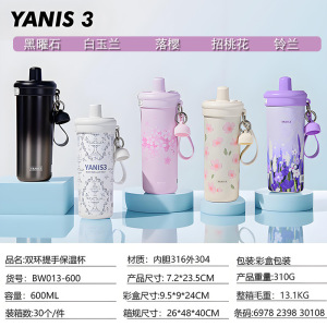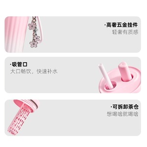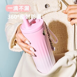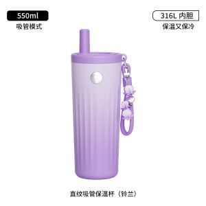 直纹保温杯女316水杯轻奢高级感女士吸管水杯创意简约大容量