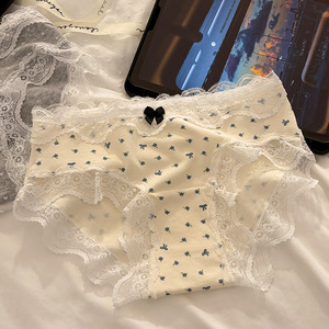 "莫奈秘密花园"【甜蜜预习】法式蕾丝边女生内裤女士纯棉裆三角裤