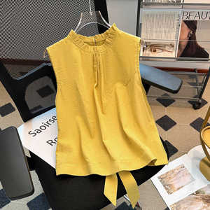 多巴胺无袖坎肩衬衫背心女2025夏季新款法式绝美娃娃小衫短款上衣