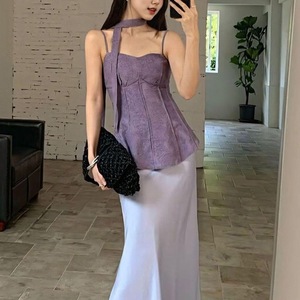复古气质提花背心吊带女2025夏季新款设计感飘带洋气百搭无袖上衣