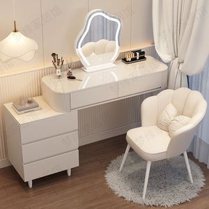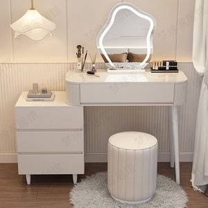 奶油风岩板梳妆台简约收纳柜床头柜化妆台小型卧室一体伸缩外贸厂