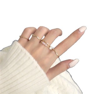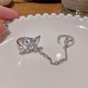 超仙水钻蝴蝶拼接珍珠链条戒指韩国高级感小众简约流苏套戒指环女