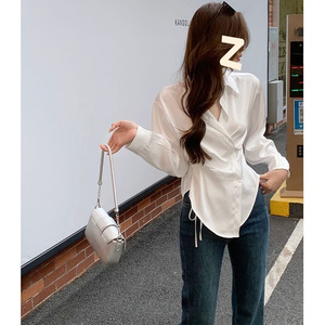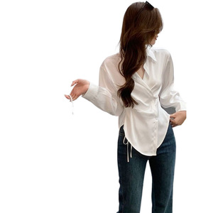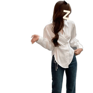 法式白色缎面衬衫女2025春秋轻熟风气质防晒精致衬衣鱼骨别致上衣