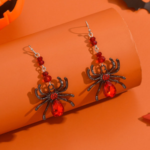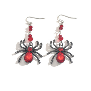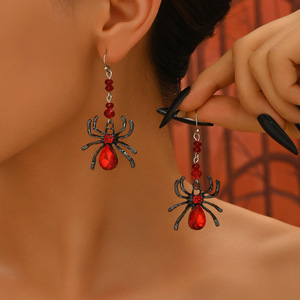 欧美跨境新款万圣节哥特风暗黑红色宝石蜘蛛耳环耳饰厂家批发