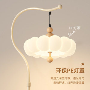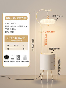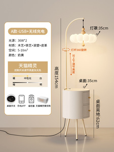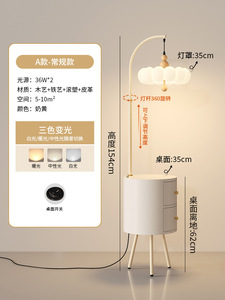 极简奶油风落地灯氛围感中古风客厅沙发旁卧室床头柜一体置物灯具