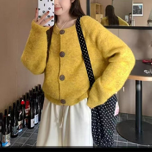 韩版针织开衫女秋冬新款高级感宽松轻奢休闲软糯长袖圆领毛衣外套