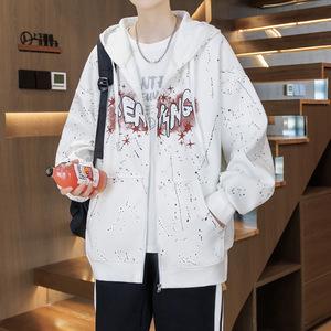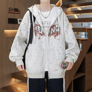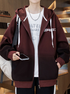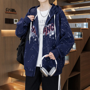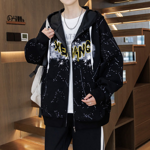 卫衣开衫男生春秋款初中高中学生潮流帅气青少年大童男装外套上衣