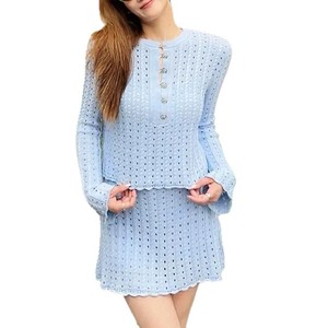 2025早秋新款长袖镂空时尚法式A字短裙针织上衣气质小香风套装女