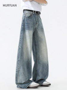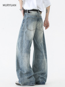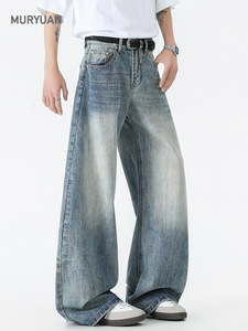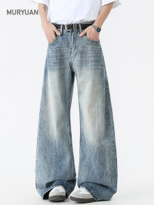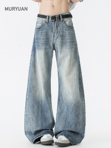 慕沅男装 cleanfit美式竹节纹弯刀牛仔裤男女同款宽松直筒阔腿裤