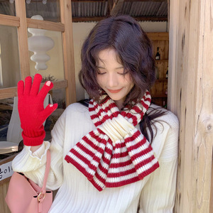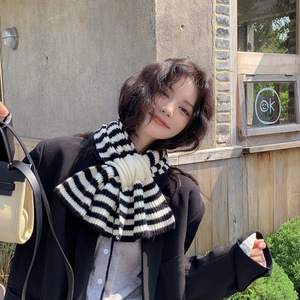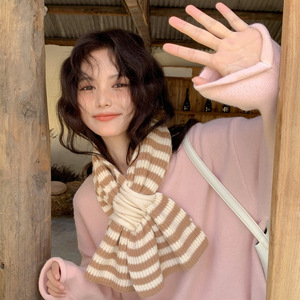 时尚百搭双色道道交叉围巾女软儒针织毛线秋冬新款高品质短款围巾