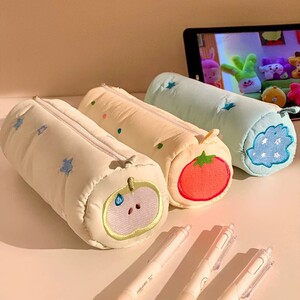 新款青苹果笔袋日系小众高颜值化妆包大容量简约学生文具盒收纳袋