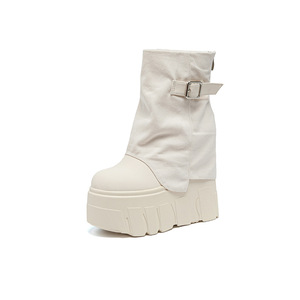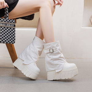 女式皮带扣皮靴靴2025年秋冬季新款裤管马丁超高跟纯色简约百搭潮