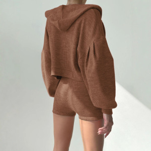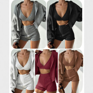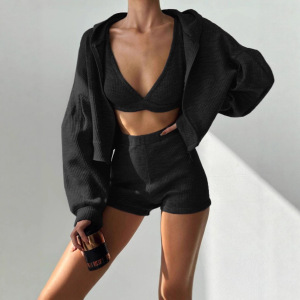 欧美辣妹运动休闲拉链连帽套装女秋季跨境新款舒适短款上衣三件套