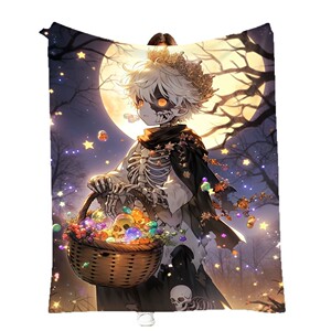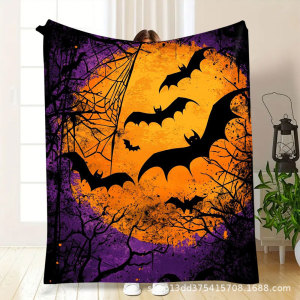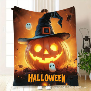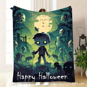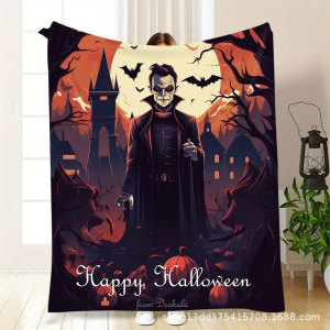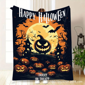 跨境毛毯万圣节数码印花家用客厅卧室保暖法兰绒盖毯万圣节限定