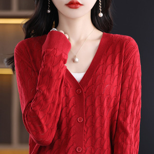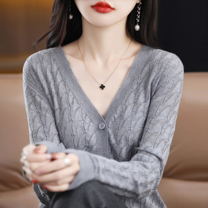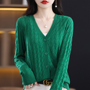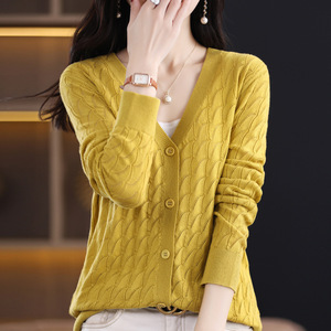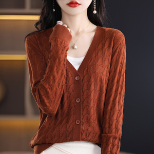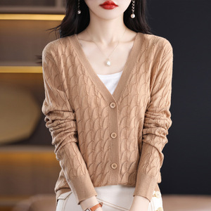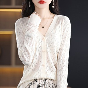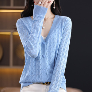 秋季新短款女开衫v领小睫毛镂空外套薄款上衣针织衫2025女装服饰