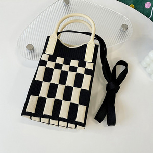 2025新款手机包女士迷你卡通猫咪可爱零钱包外出游玩针织斜挎小包