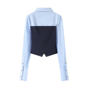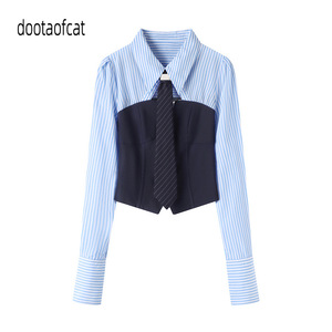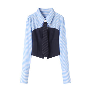 2025秋季新款女时尚甜美假两件领带翻领长袖衬衫小上衣RL70801031