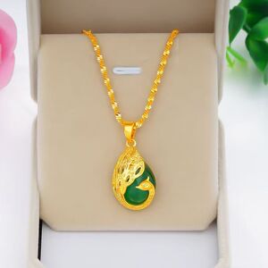 新款沙金吊坠孔雀凤凰四叶草项坠新款复古时尚饰品心有灵犀项链