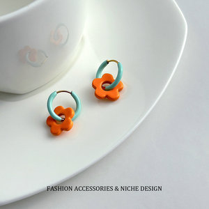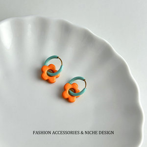 ins风多巴胺撞色滴油花朵耳环女小众设计可爱高级感彩色甜美耳扣