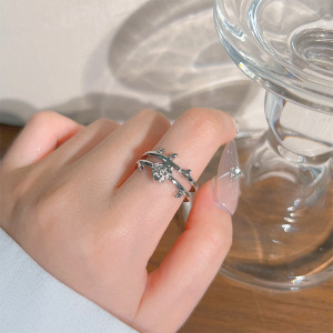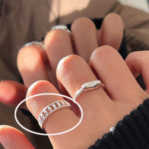 褶皱肌理戒指女几何不规则S925银个性开口指环ins小众设计食指戒