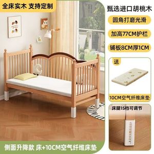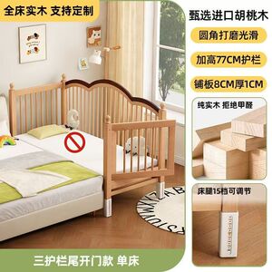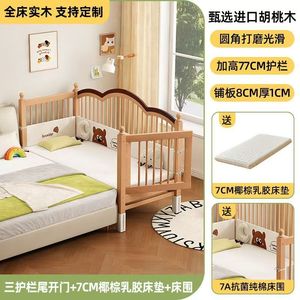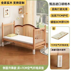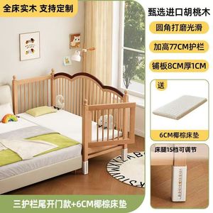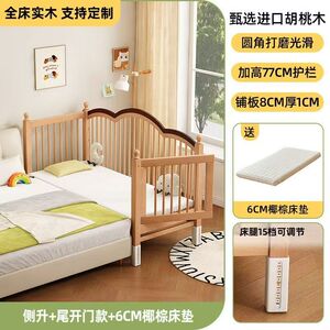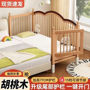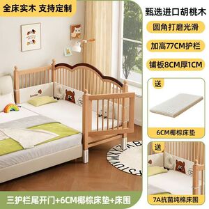 胡桃木儿童拼接床实木婴儿床大床升降护栏可调节腿加宽床边宝宝床