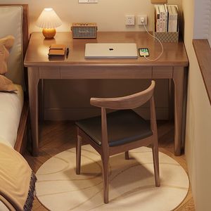 全实木窄书桌台式电脑桌简约家用办公桌小户型卧室写字桌长条桌子