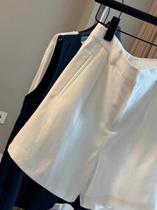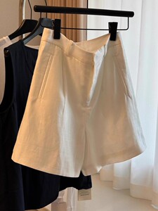 CHAO级无D推荐!真的好显气质~简约高级老钱风白色高腰亚麻短裤