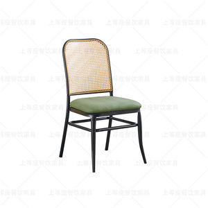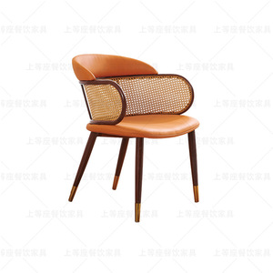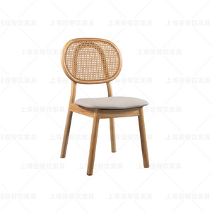 商用东南亚风北欧实木编藤餐椅侘寂风格原木色甜品奶茶店咖啡厅