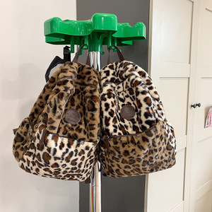 跨境豹纹拼接撞色双肩包毛绒大容量百搭旅行背包男女学生上课书包