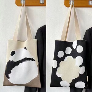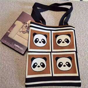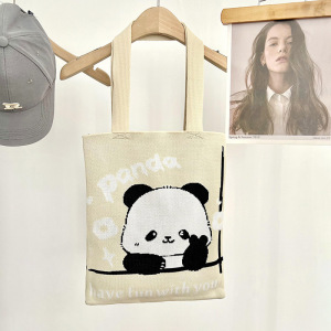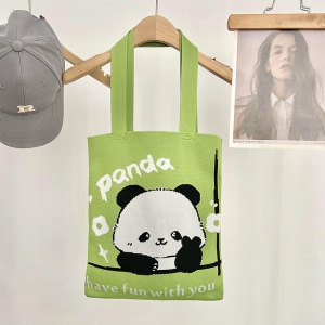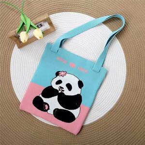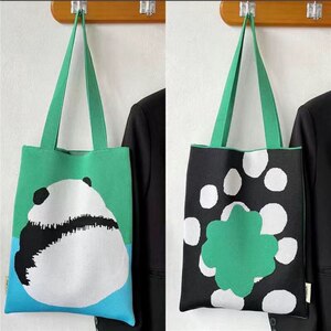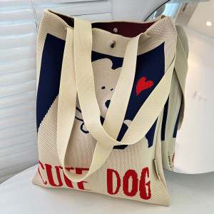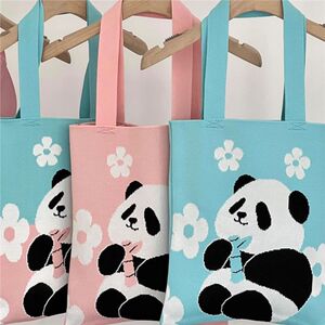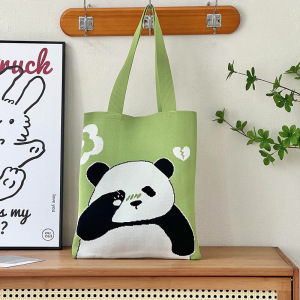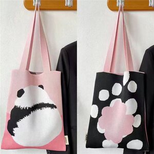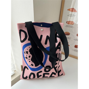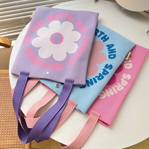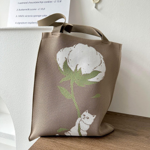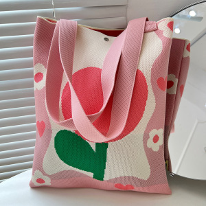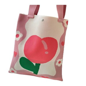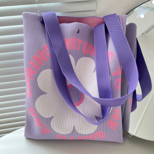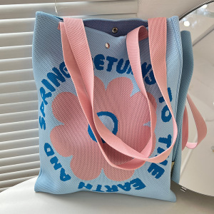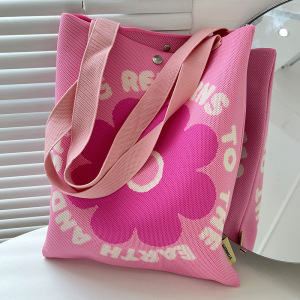 日韩甜美花朵单肩包大容量针织托特包百搭日常学生补习装书手提袋