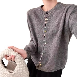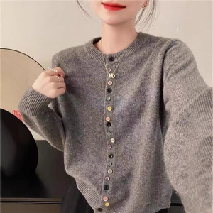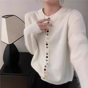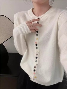 彩色扣子毛衣女2025秋冬新款小香风显瘦百搭柔软长袖上衣针织开衫