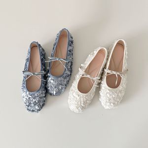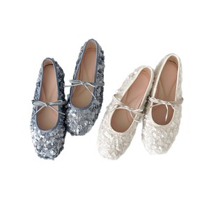 羊皮版~法式仙女亮片蝴蝶结圆头芭蕾舞鞋女平底鞋浅口玛丽珍单鞋