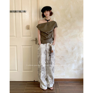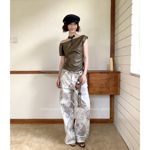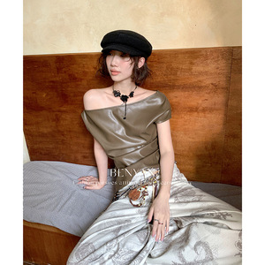 BENYAN本言 法式一字领露肩皮背心女小众设计感时髦百搭上衣82300