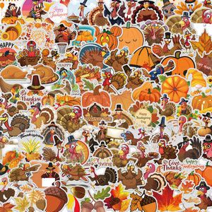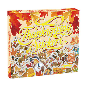 200张跨境感恩节贴纸精美烫金礼盒装卡通火鸡节日手机壳防水贴纸