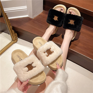 厚底毛毛拖鞋女外穿2025秋冬新款韩版时尚仙女风松糕一字毛绒半拖
