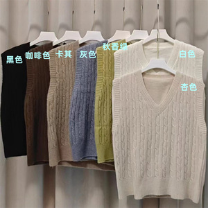秋冬新款韩系麻花V领针织马甲女外搭叠穿套头无袖毛衣背心上衣女