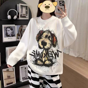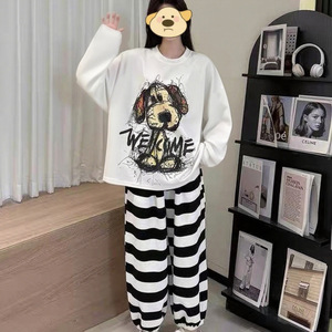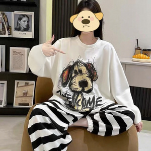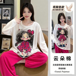 云朵棉带胸垫睡衣女春秋宽松大码卡通女士家居服长袖套装