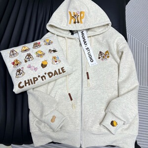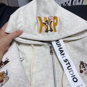 国潮牌设计感重工刺绣连帽加绒卫衣男女款秋冬慵懒风开衫休闲外套